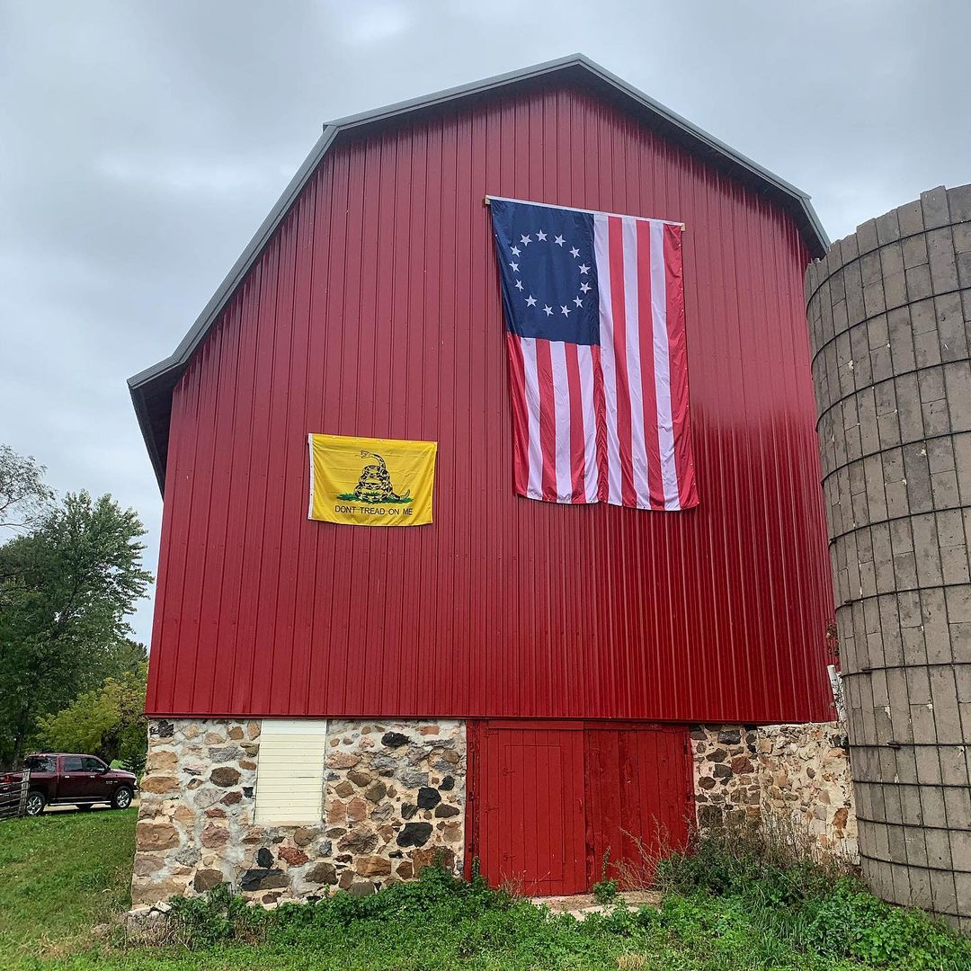 Custom sized Betsy Ross Flag mounted to barn along the top header
